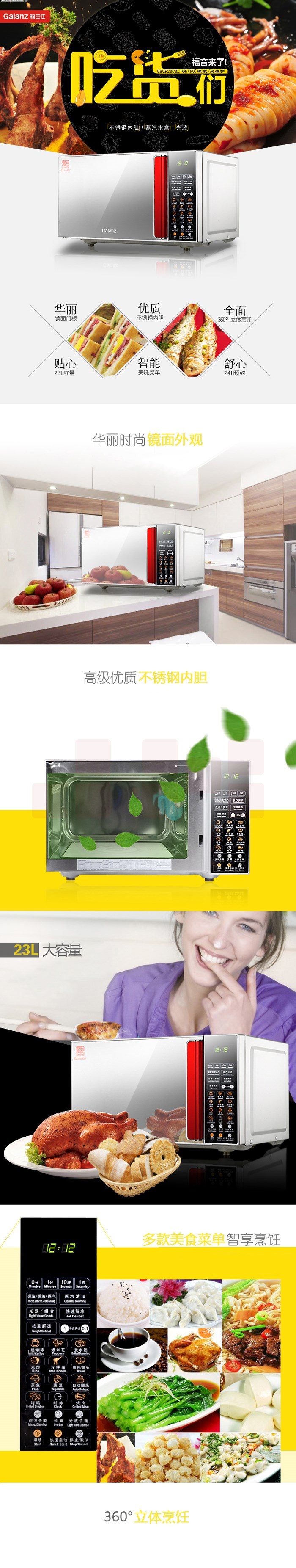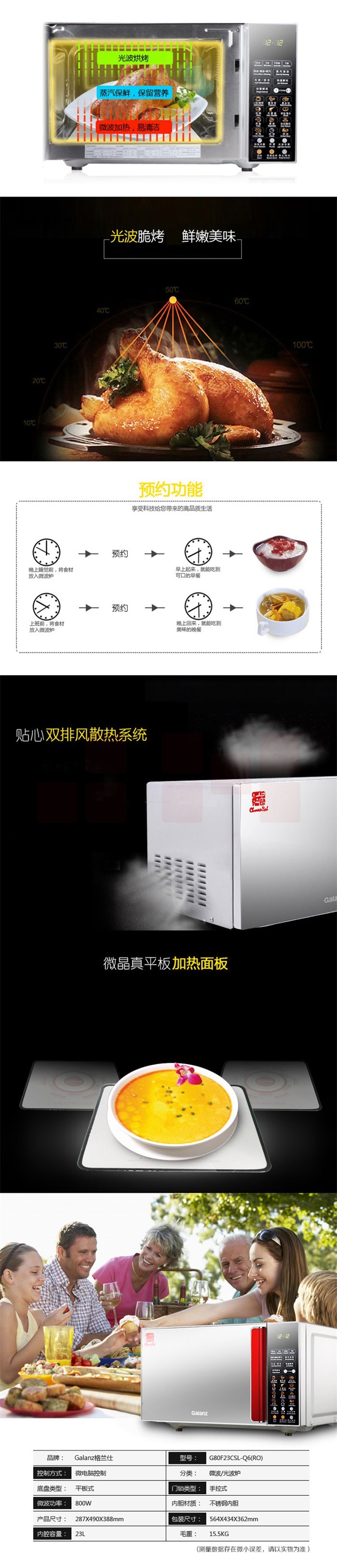 格兰仕(GALANZ) G80F23CSL-Q6(R0) 不锈钢内胆23L时尚镜面微波炉