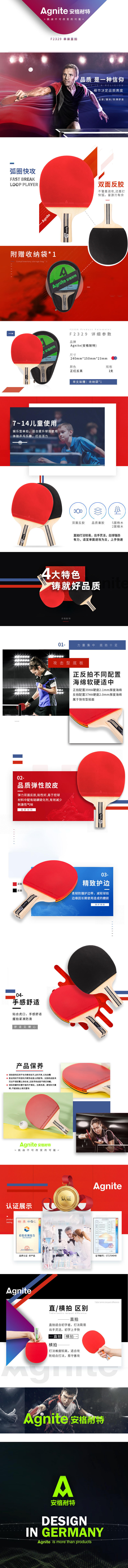 安格耐特F2329三星乒乓球拍(红+黑)(直拍)(单支装)