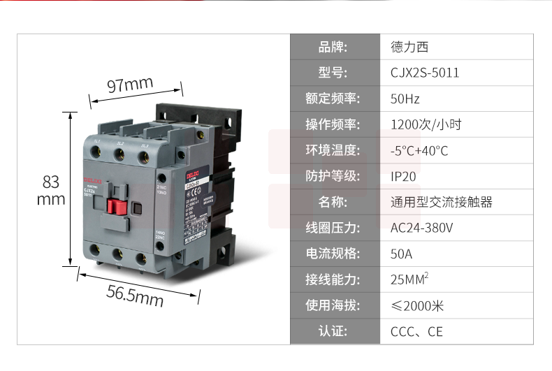 德力西 交流接触器 CJX2S-5011 接触式继电器 220V