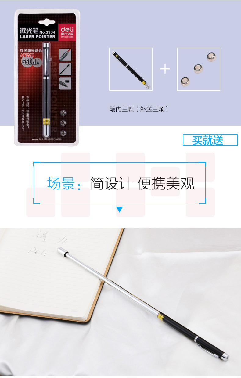 得力(deli)办公红外线笔激光笔PPT电子笔远射会议教学教鞭笔 银色