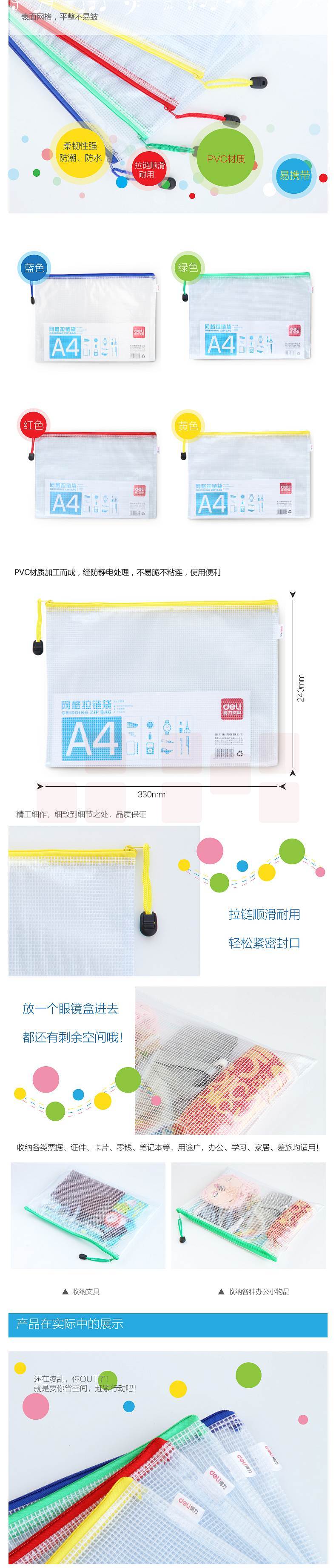 得力 5654 A4拉链袋330*235mm 10个/包 绿 (单位:个)