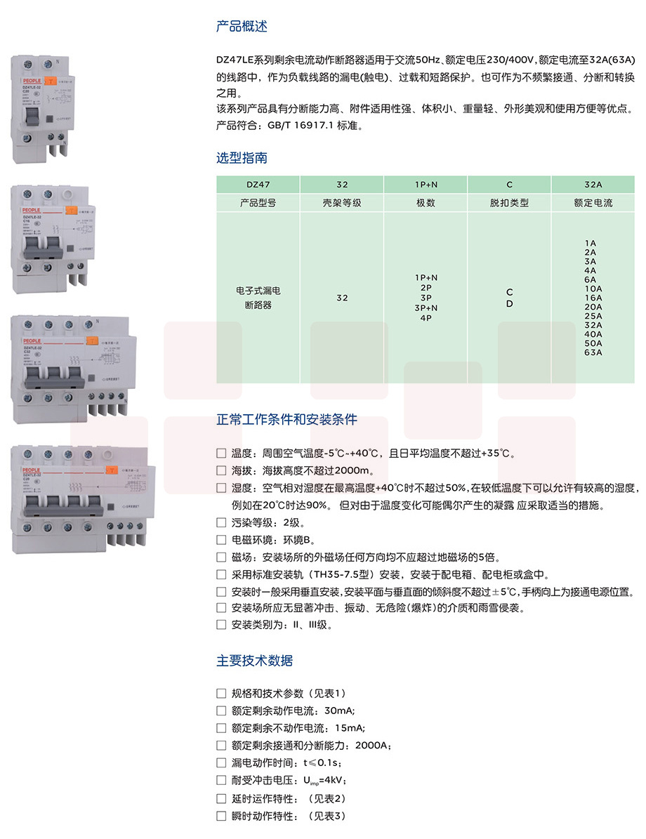 人民电器 DZ47LE-3P40A 4L 漏电保护器