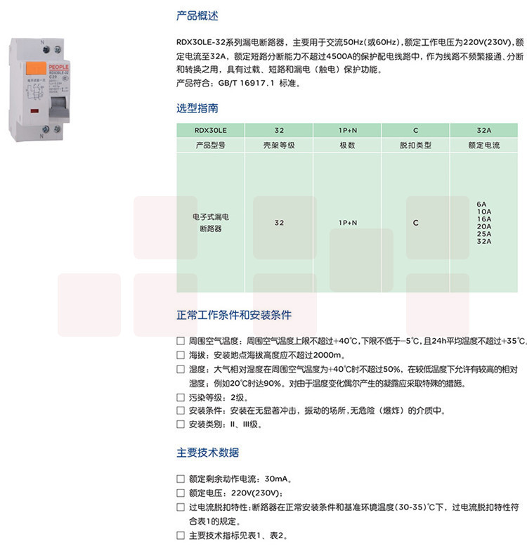 人民电器 RDX30LE-32 25A拼装 漏电断路器