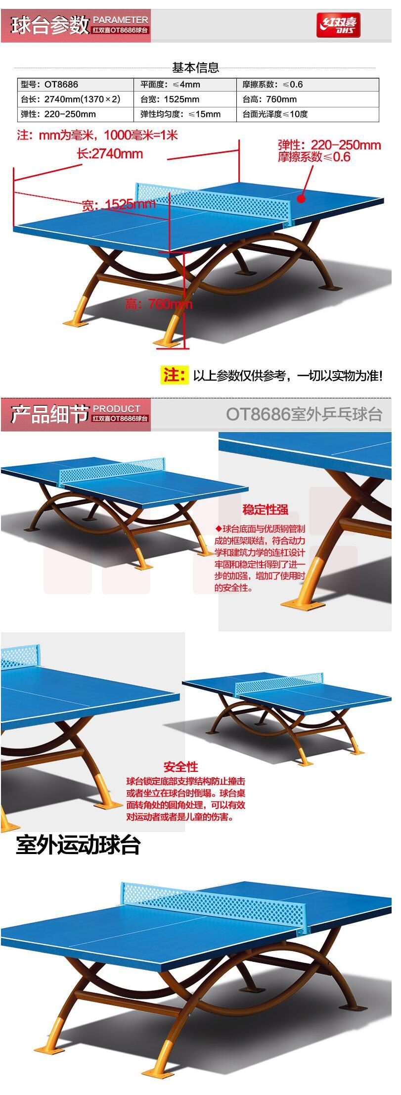 红双喜 乒乓球台OT8686 室外 双拱型 户外乒乓球桌