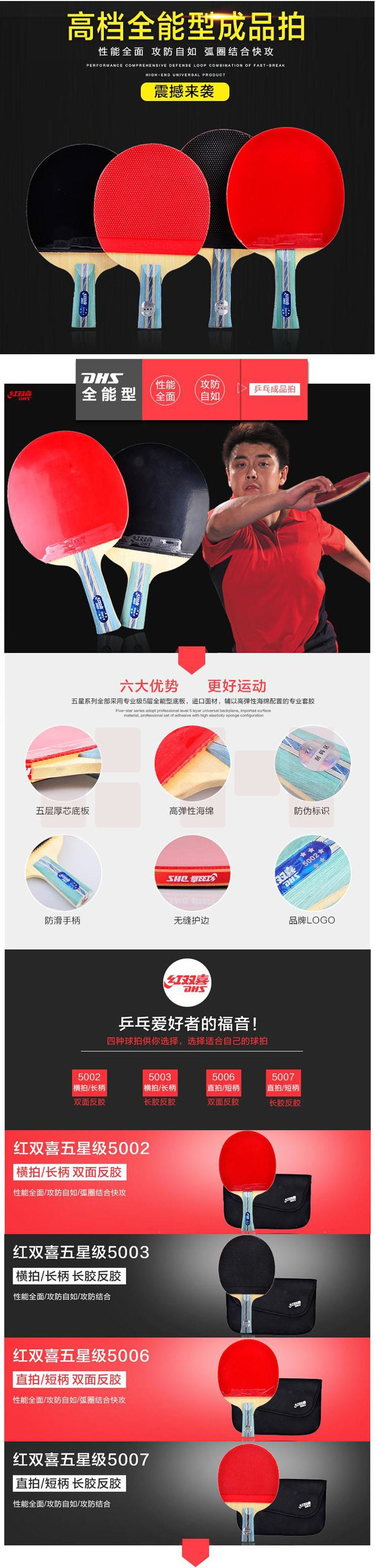 红双喜横拍双面长反胶乒乓球拍 DXEG421-1 A5003