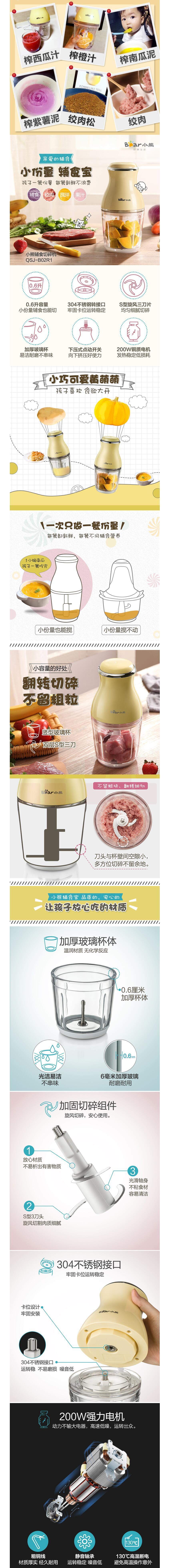 小熊(Bear) QSJ-B02X5 0.6L 绞肉机家用电动多功能小型婴儿辅食机榨汁机料理机搅拌机双杯双刀迷你碎肉绞馅肉