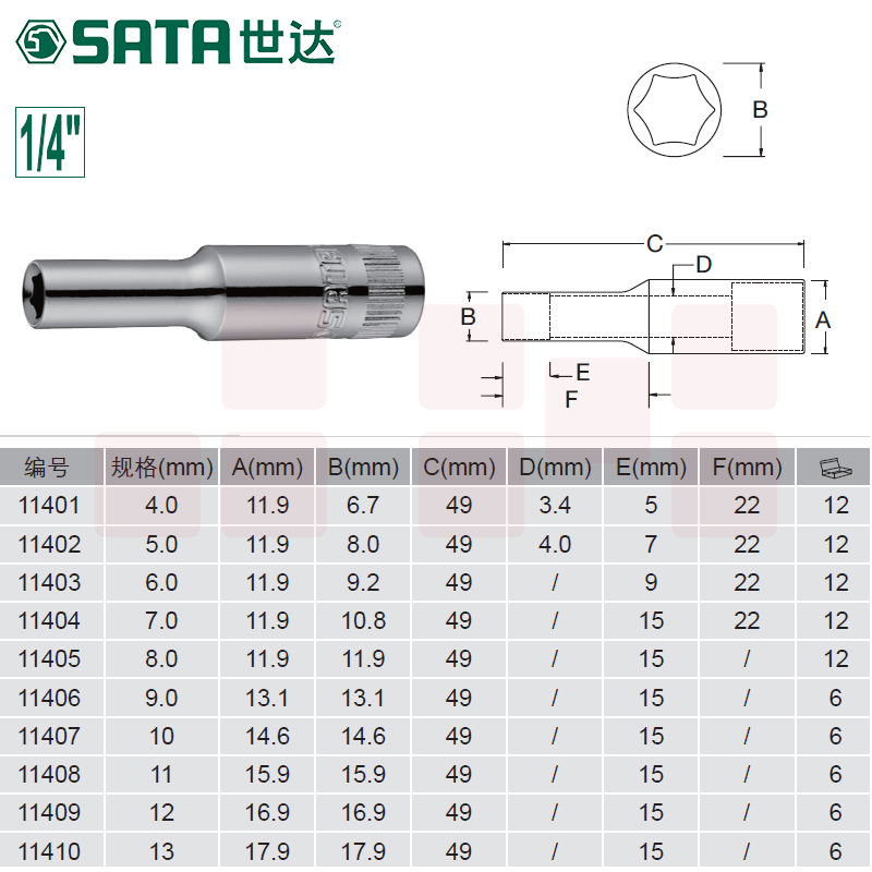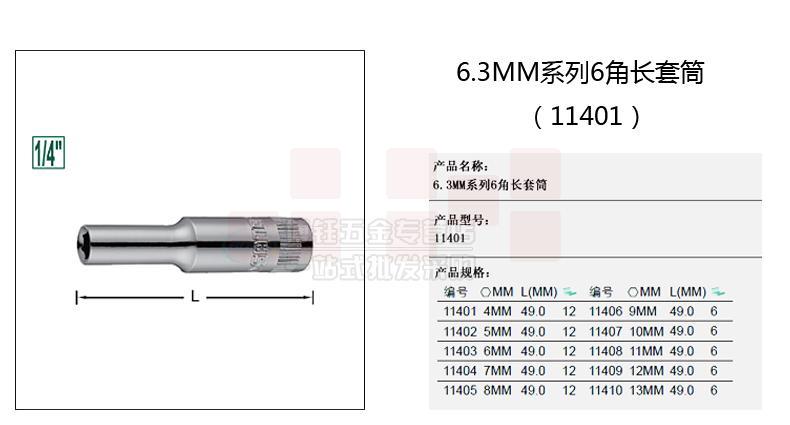 世达(SATA)6.3MM系列6角长套筒4MM 11401