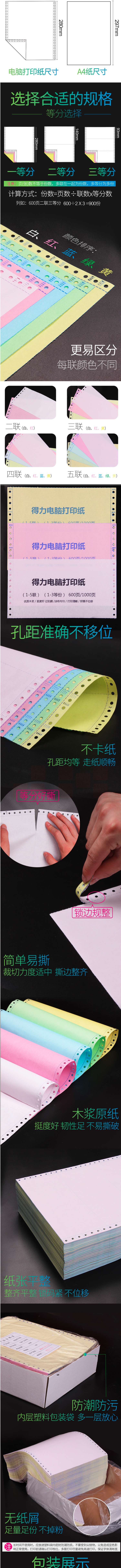 得力塞纳河 241-1 单联 (1层)一等份 电脑打印纸 连续针式打印纸 可撕边