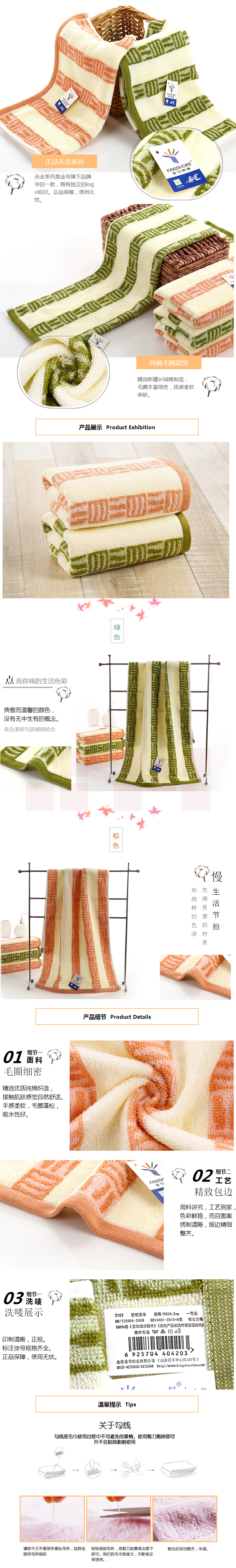 金号毛巾 74*34.5cm 素色纯棉吸水面巾 绿/棕 85g/条