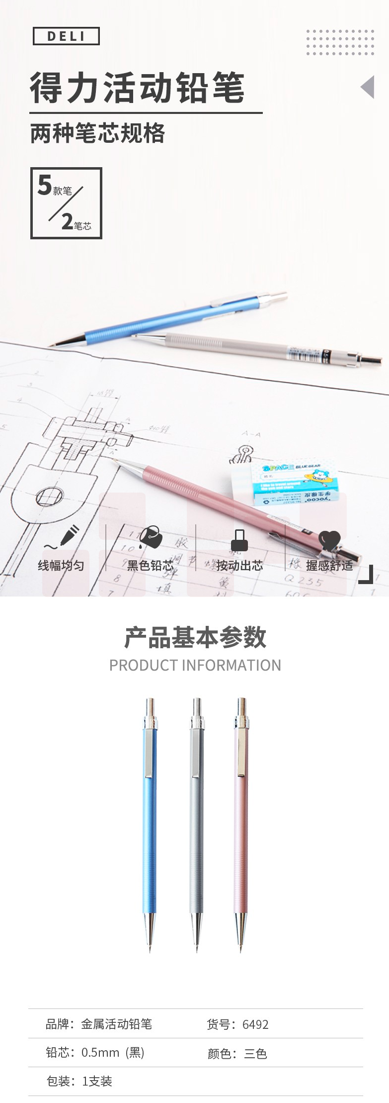 得力6492金属活动铅笔0.5mm (36支/盒)单支装价格