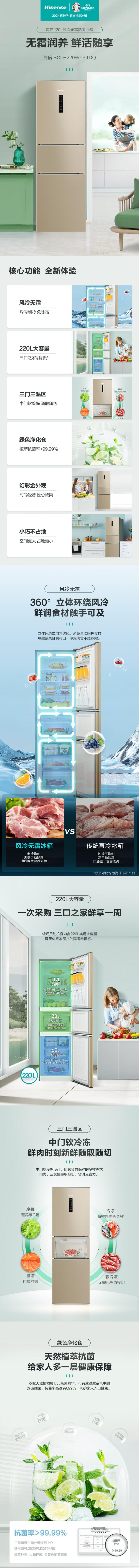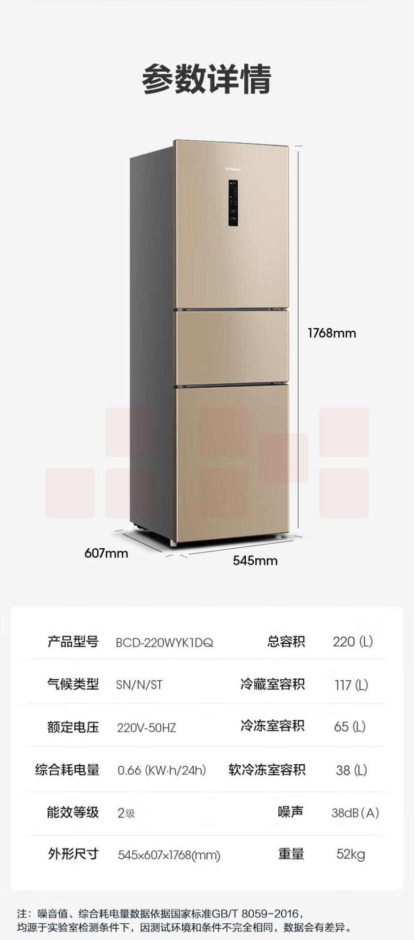 海信 220L 三开门冰箱无霜冰箱BCD-220WYK1DQ