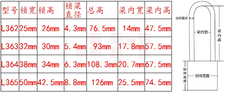 三环 加长铁挂锁 铜芯 32mm L363 6把/盒 单位;把