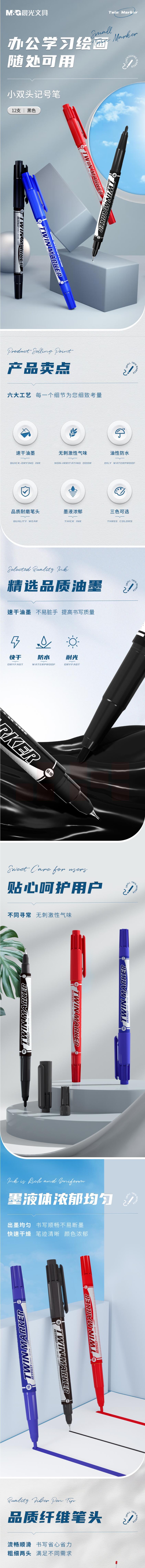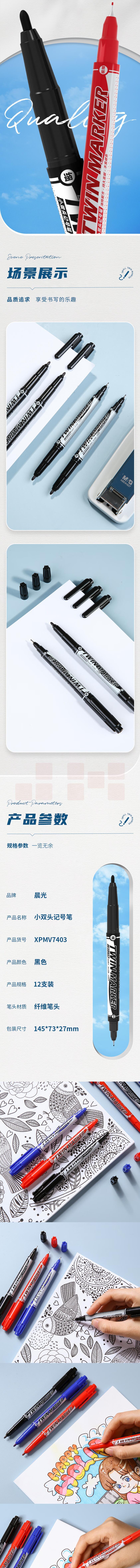 晨光 红色双头记号笔油性笔 12支装 XPMV7403