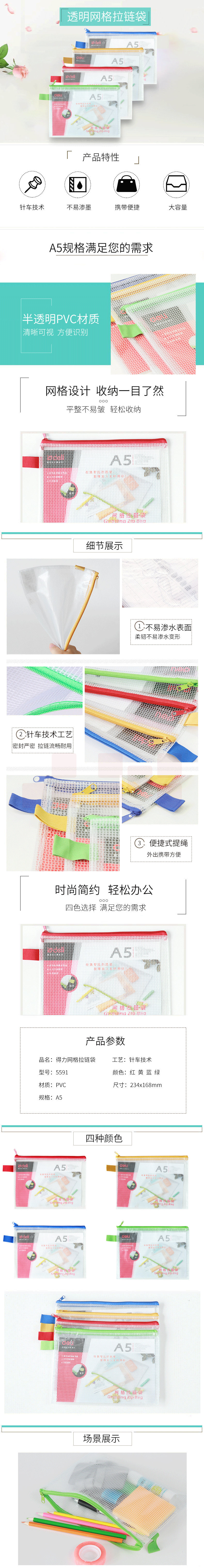 得力A5网格拉链袋文件袋234*168mm 透明 5591