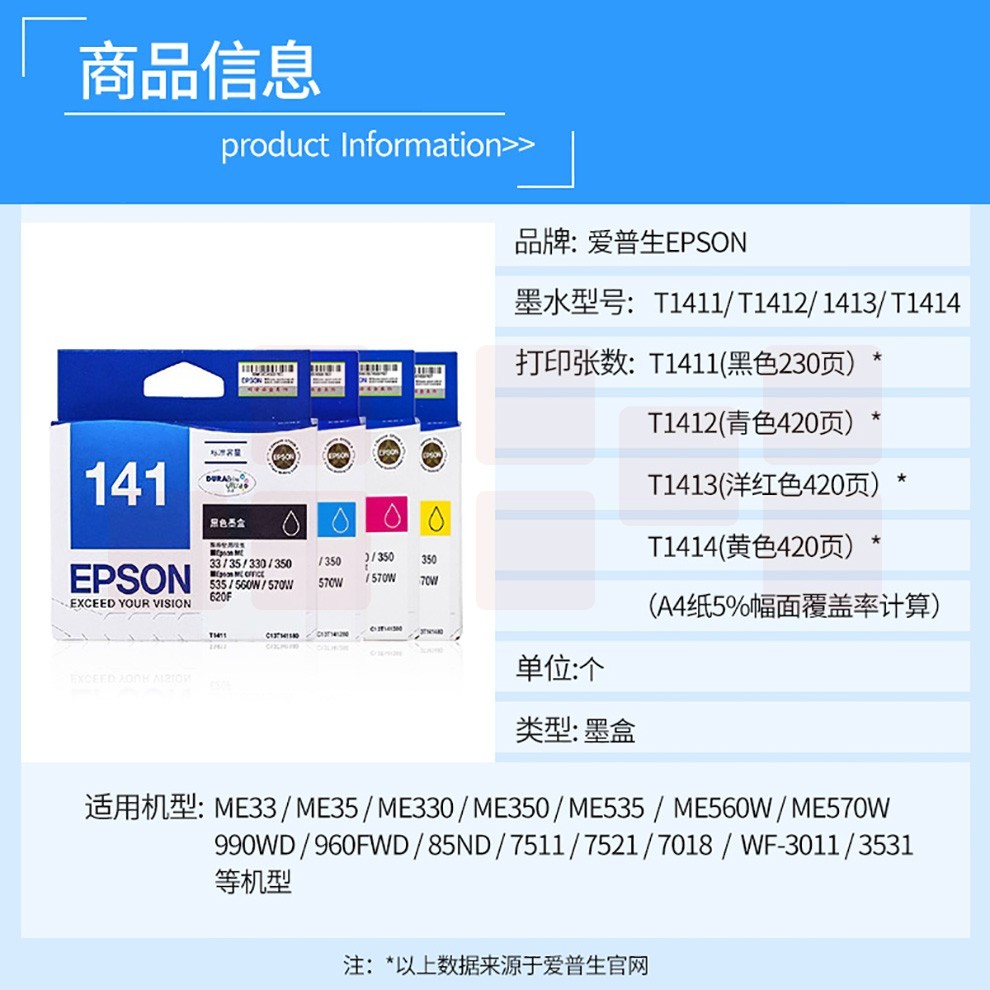 爱普生T1411墨盒 141 E33 35 330 350 535 560 620 570 T1411黑色