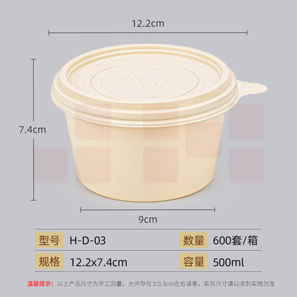可降解餐盒 一次性圆形外卖盒打包盒 H03 500ml 600个/箱