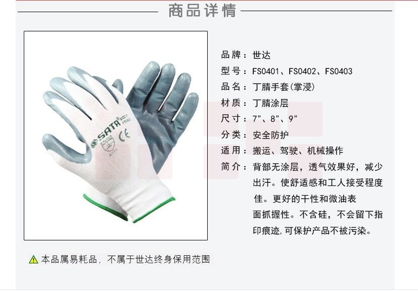 世达 FS0401 丁腈手套掌浸 7寸 12双/包