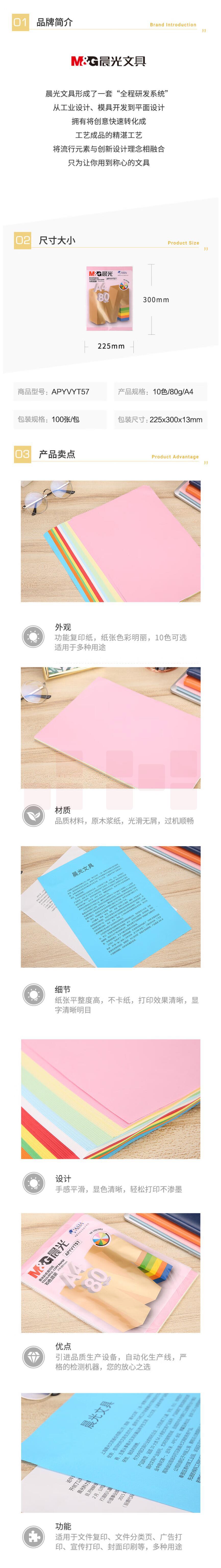 晨光 彩色打印纸 A4 80g 100张/包 10色混装手工纸APYVYT58