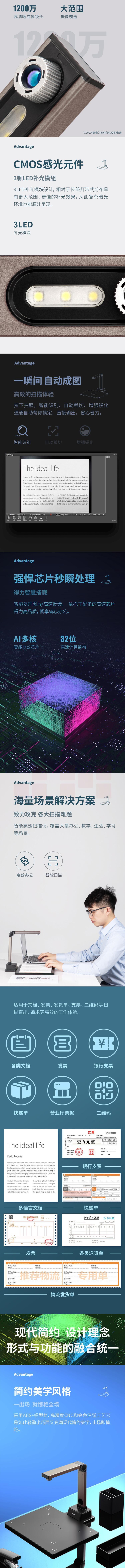 得力15157 高拍仪 1200万像素自动对焦A4幅面 高效商用办公文档证件保存 远程教学网课投影录像