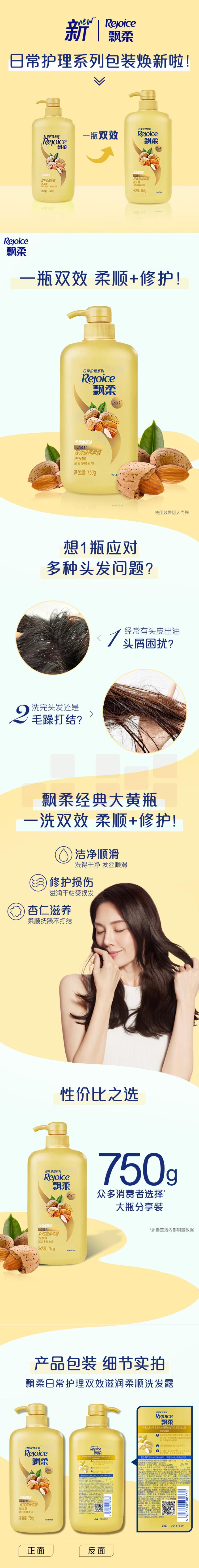 飘柔洗发水 杏仁双效滋润 750g洗发露 洁净柔顺 适合干性发质