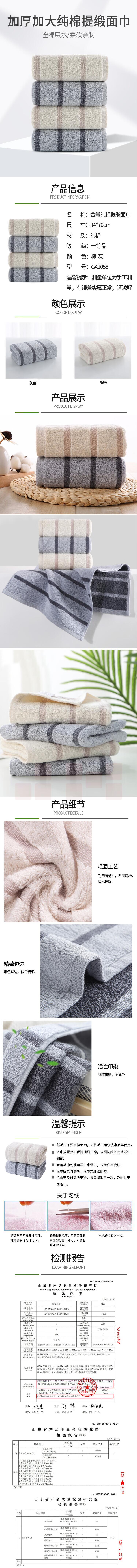 金号毛巾 GA1058 面巾 70*34cm纯棉加厚吸水 新疆棉 108克