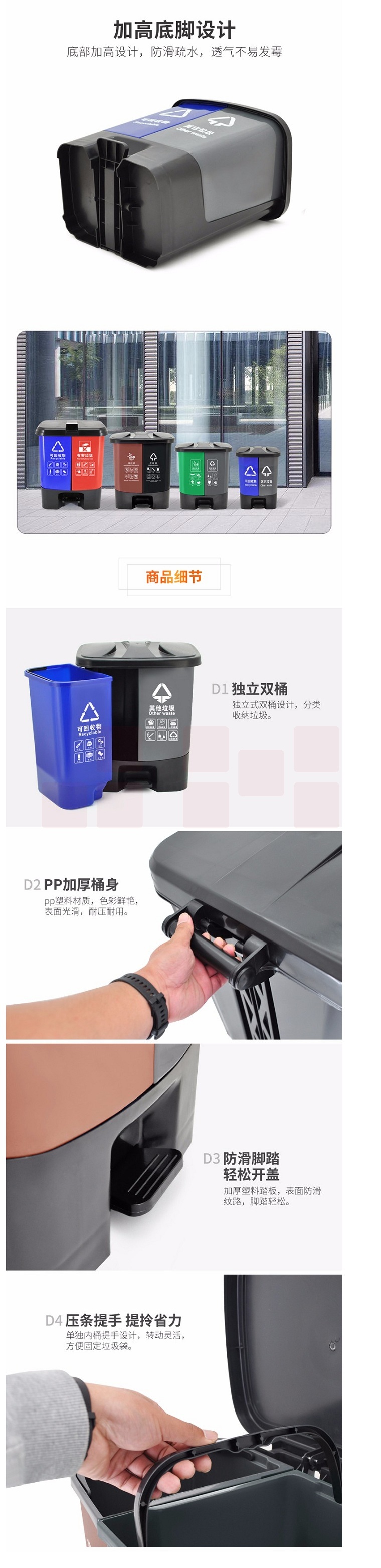 双牌 60L双桶 塑料内胆垃圾桶 800*400*950mm 蓝灰色 (计价单位:组)