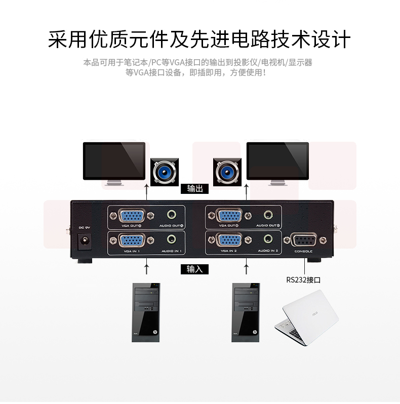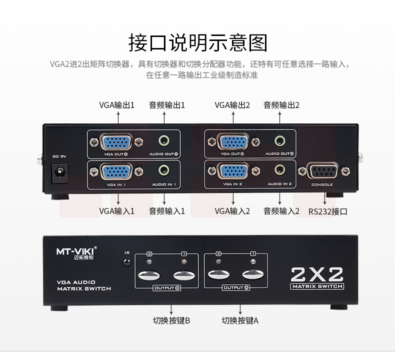 迈拓维矩MT-VT212 vga矩阵切换器音频视频2进2出高清监控矩阵切换器