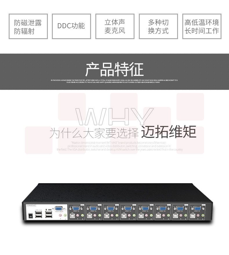 迈拓维矩MT-0801VK 工业级kvm切换器8进1出自动8口带OSD显示器电脑vga