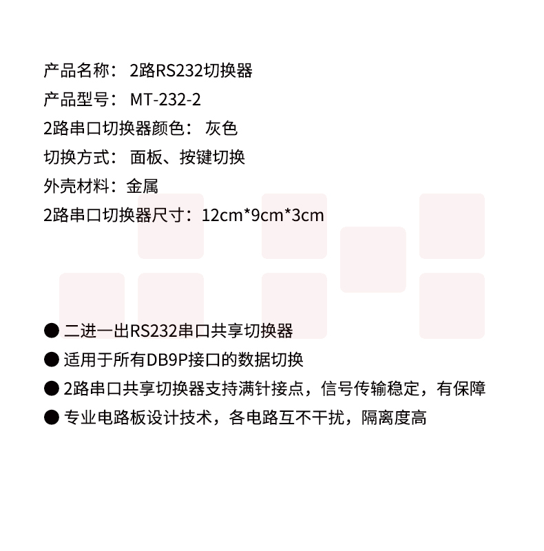 迈拓维矩MT-232-2 2口手动 RS232串口切换器串口切换器COM切换器