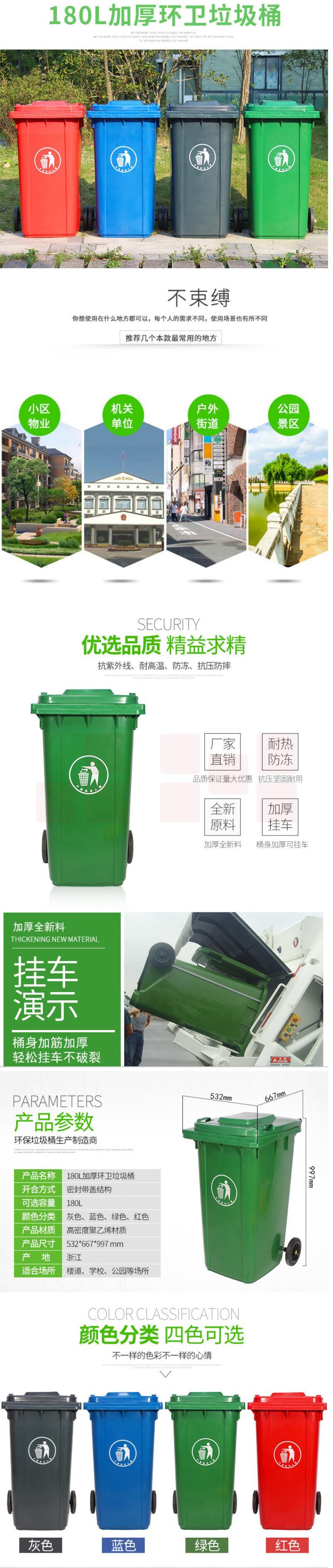 环卫垃圾桶180L 户外大号特厚塑料带轮清洁筒
