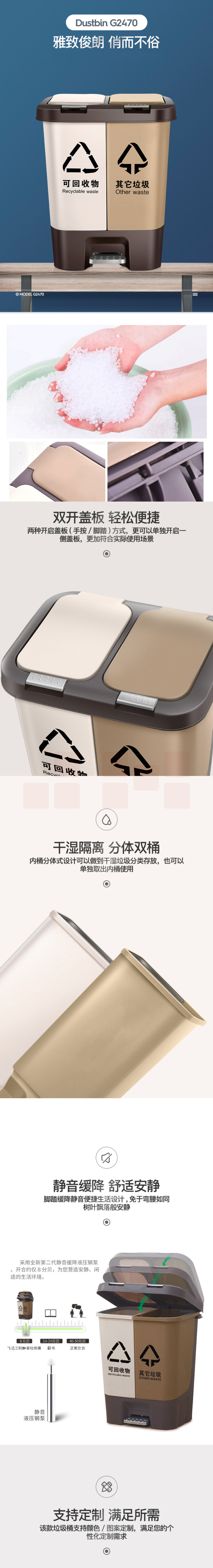 双色分类垃圾桶厨房干湿分离款脚踏式垃圾桶20L