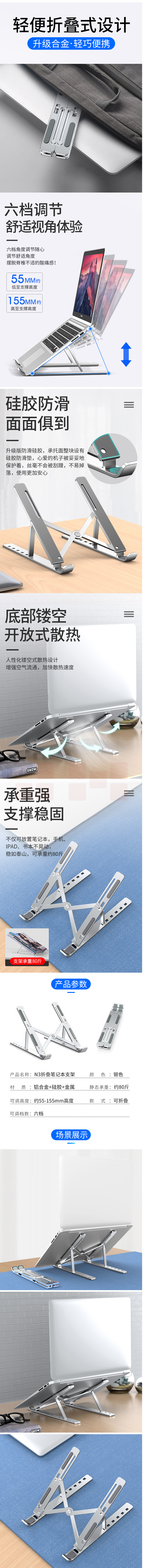 诺西 N3 电脑支架 笔记本电脑增高托架 两层铝合便携式支撑