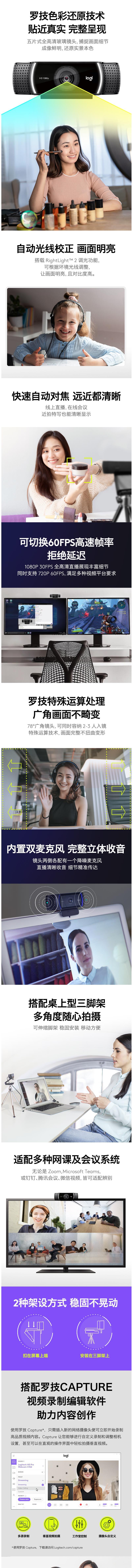 罗技 C922PRO 摄像头 电脑视频网课会议1080P高清摄像头