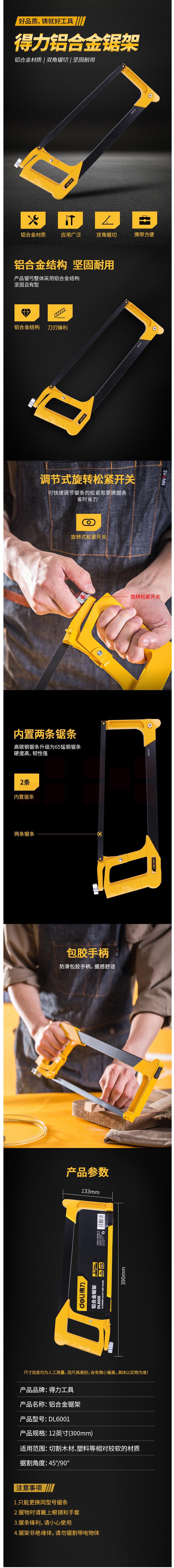 得力(deli) 铝合金方管锯 手工锯子弓锯 带锯条12英寸 DL6001