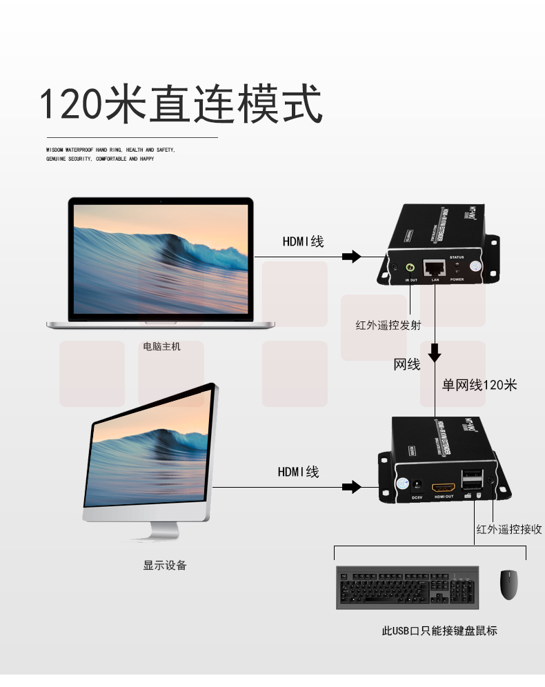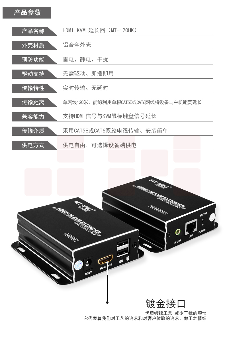 迈拓维矩MT-120HK hdmi带键盘鼠标传输器kvm网络延长器usb网线延长器 单接收器