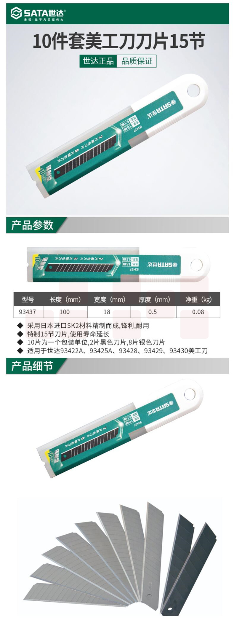 世达(SATA)美工刀刀片14节18x100MM 93437 10片/套