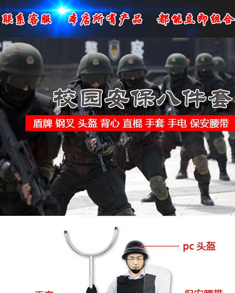 安保套装盾牌钢叉防刺衣防身头盔棍学校幼儿园物业保安防暴器材
