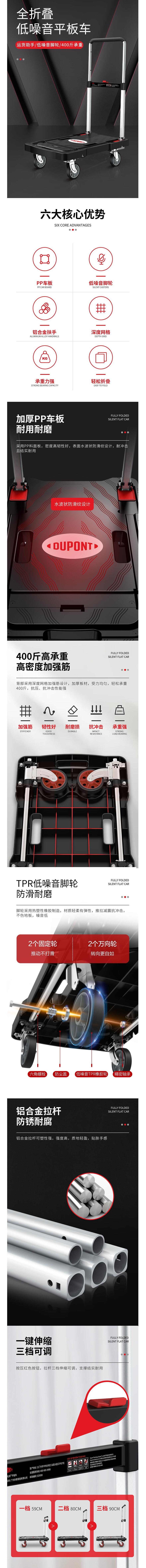 杜邦 全折叠平板车承重约400斤 41*64cm 货号:JC