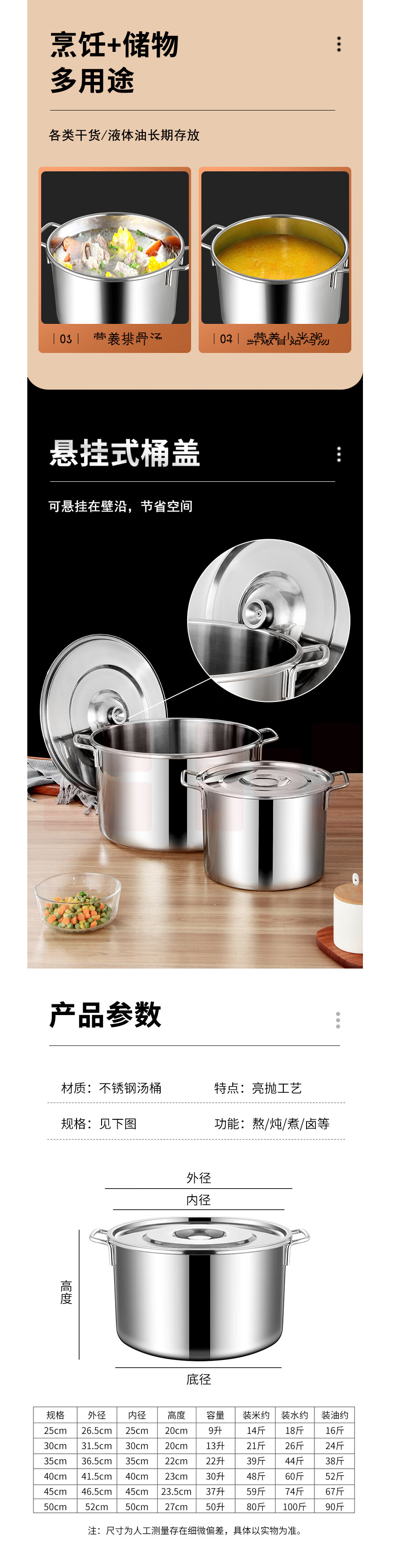 不锈钢桶圆桶带盖汤桶 50升 货号:JC