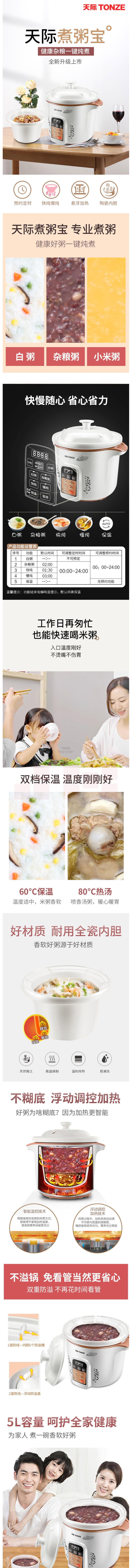 天际(TONZE)DGD50-50TZ 电炖锅煮粥锅5L容量煲汤锅炖汤锅陶瓷 货号:WY