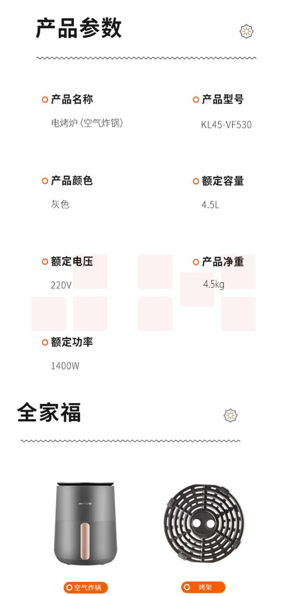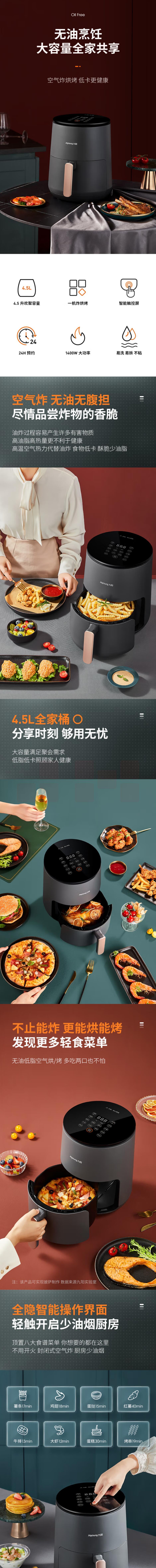 九阳空气炸锅家用大容量无油炸多功能全自动电炸锅KL45-VF510