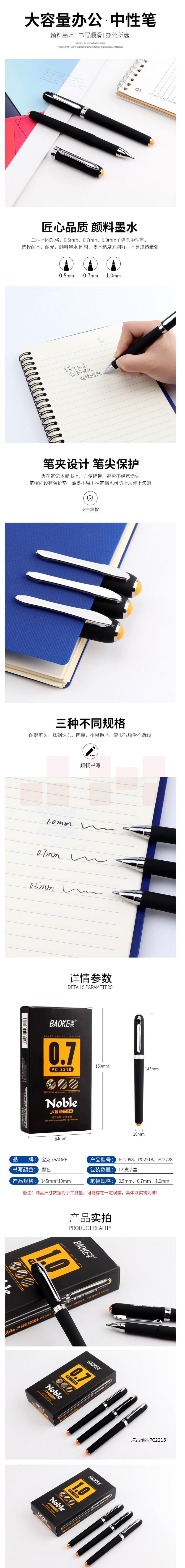 宝克(BAOKE)PC2228 1.0mm-黑色磨砂笔杆中性笔办公水笔商务签字笔 12支/盒 单支价
