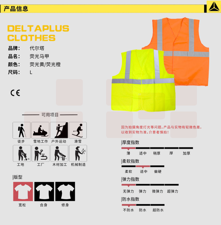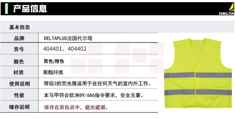 代尔塔 404402 反光条马甲 橙色反光背心 两竖一横