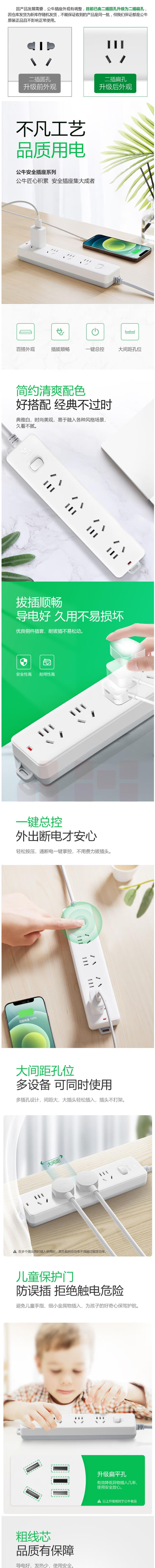 公牛GN-410 4位总控1.8米多位插座 接线板插排