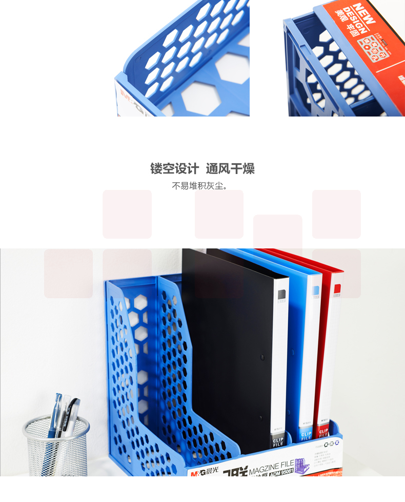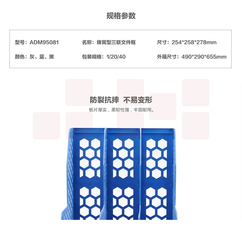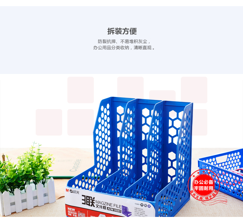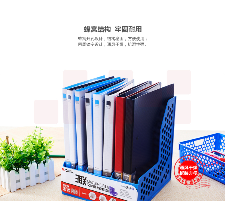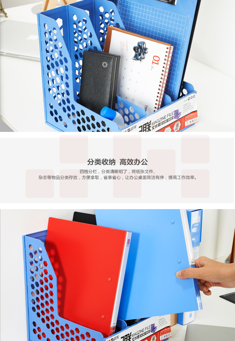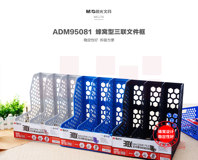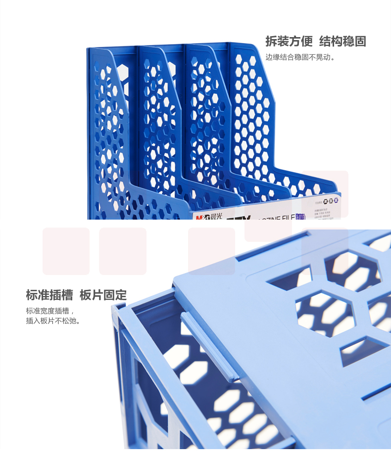 晨光(M&G)文件框文件栏办公收纳蜂窝形三联资料框文件筐ADM95081 蓝色灰色黑色颜色随机 20个/包