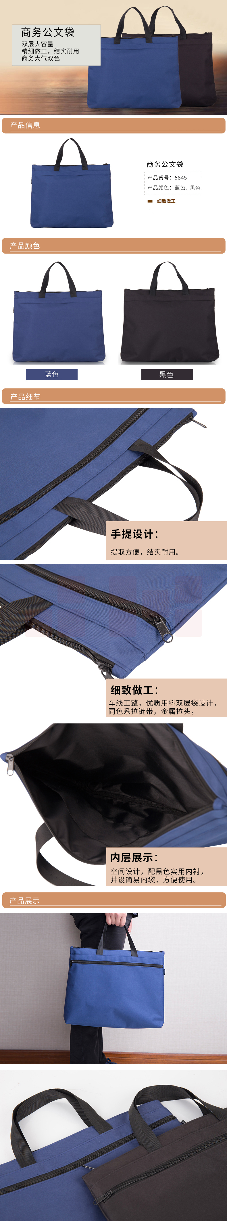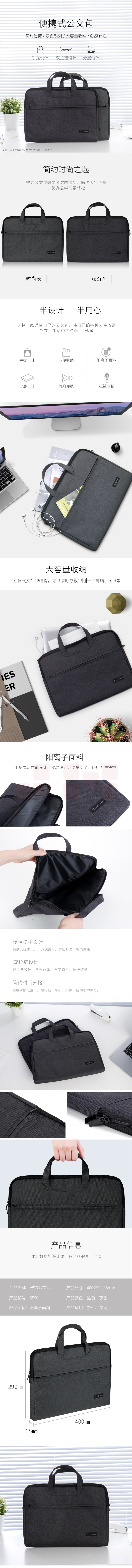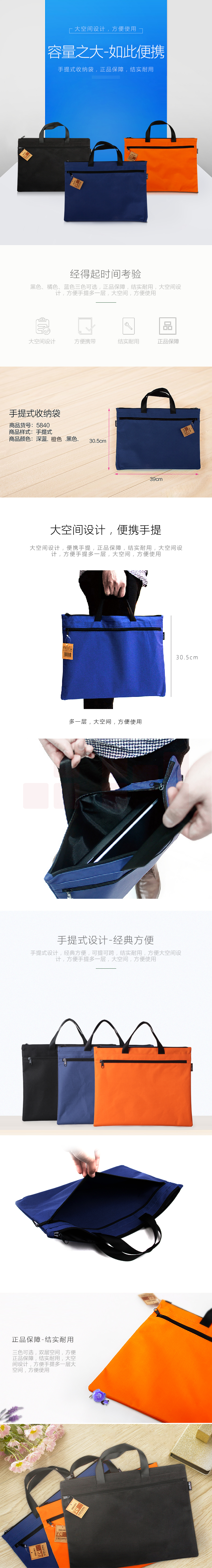 得力 5840 牛津布公文包/文件袋 双层手提袋 蓝色 单位:个