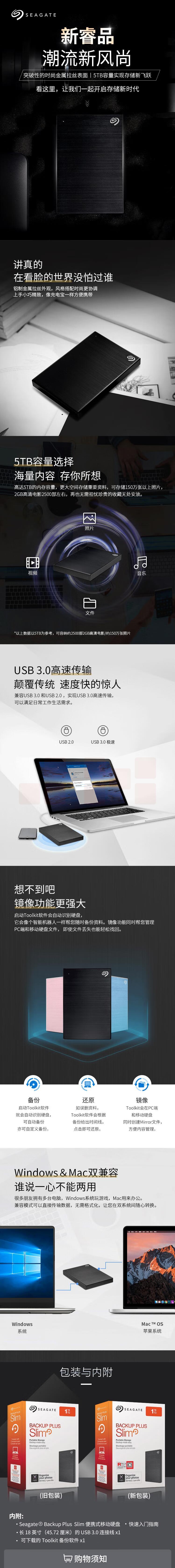 希捷移动硬盘 4TB USB3.0 2.5英寸 黑色 兼容Mac PS4