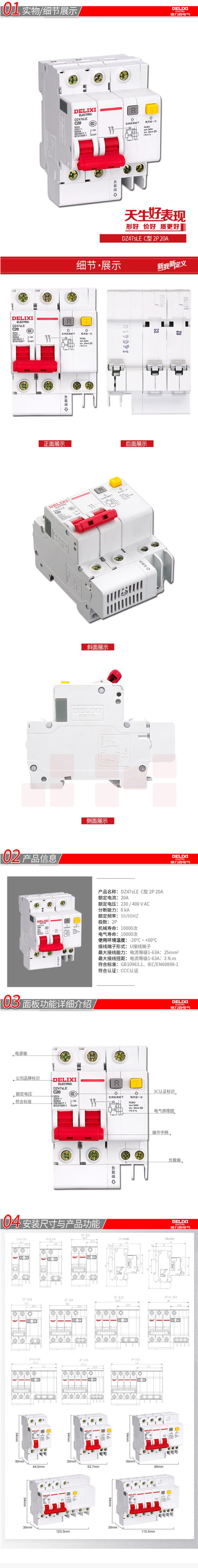 德力西 DZ47SLE-2P C型 20A (拼装) 漏电保护断路器