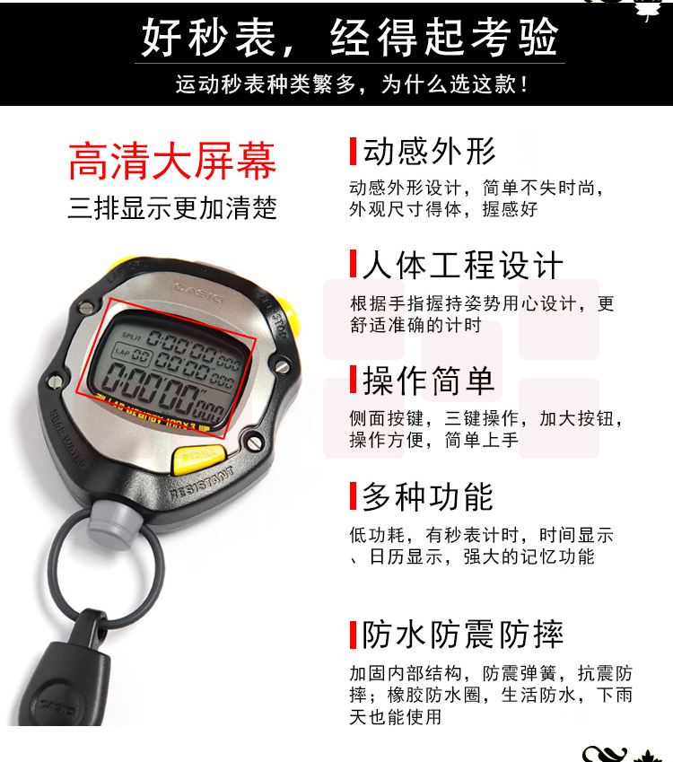 卡西欧 秒表计时器秒表 HS-70W比赛计时