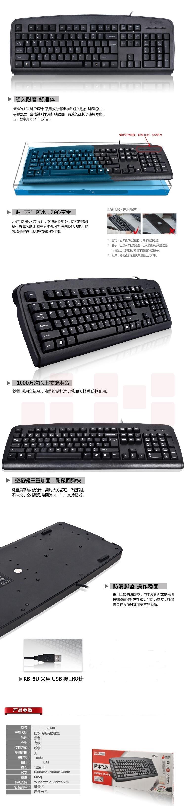 双飞燕 键盘 KB-8 USB 黑色 多媒体FN键盘